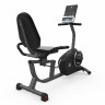 Горизонтальный велотренажер отличается комфортной эргономичной посадкой и русифицированным компьютером нового поколения. Прочная рама и каркас из высококачественных материалов допускают вес пользователя до 135 кг., рост пользователя не ограничен.  Все вращающие элементы механизма выполнены на высококачественных подшипниках. Удобное мягкое анатомическое кресло имеет несколько способов регулировки, что позволяет индивидуально адаптировать посадку и принять максимально комфортную позу. Оптимален для домашних кардио-тренировок, повышения выносливости, реабилитации и снижения веса. Электромагнитная система нагрузки EddyCurrent™ и сбалансированный маховик с инерционным весом 22 кг обеспечивают равномерное сопротивление и плавное переключение уровнейТрехкомпонентный педальный узел с автобалансировкой обеспечивает естественную биомеханику движения. Все это гарантирует высокую надежность и функциональность тренажера.