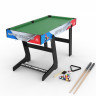 Бильярд дома — это азарт и увлекательная игра в любой момент с семьёй, друзьями и гостями! Стол DFC «Vortex» SB-BT-02LSVT с классической расцветкой впишется в любой интерьер, понравится и детям, и взрослым: веселье гарантировано всем членам семьи! Особенности стола Игровое поле Игровое поле размерами 113,7 х 52,7 см выполнено из высококачественного МДФ толщиной 4,75 мм. Высота боковых стенок, ламинированных ПВХ, — 12 мм, толщина — 11,8 см. Ножки стола Игровое поле установлено на ножки из МДФ, ламинированного чёрным ПВХ, шириной 95 мм и толщиной 15 мм. Конструкция укреплена перекладиной из МДФ толщиной 12 мм. Складная конструкция После игры стол легко складывается: его можно убрать к стене или в кладовую, где он займёт минимум пространства. Комплектация Стол поставляется с комплектом из 2-х киев, комплектом шаров, треугольника, щетки и 2-х мелков. Деревянный кий длиной 92,7 см. Шары для игры диаметром 36 мм изготовлены из смолы.