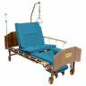 Кровать медицинская функциональная 4-х секционная, с электрическим приводом для регулировки высоты, спинной и тазобедренной (ножной) секции и угла антитренделенбург, с пультом управления, оснащённым блокировкой. Главная особенность данной модели - она практически неотличима от простых домашних кроватей, и имеет ортопедическое ложе из лёгких металлических ламелей в коричневой эмали, обеспечивающих оптимальное распределение веса и дополнительный ортопедический эффект.