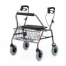Сиденье ходунков выполнено из высокопрочного сетчатого полиэстера с полиуретановым покрытием, фиксированное (не откидное), предназначено для отдыха пользователя